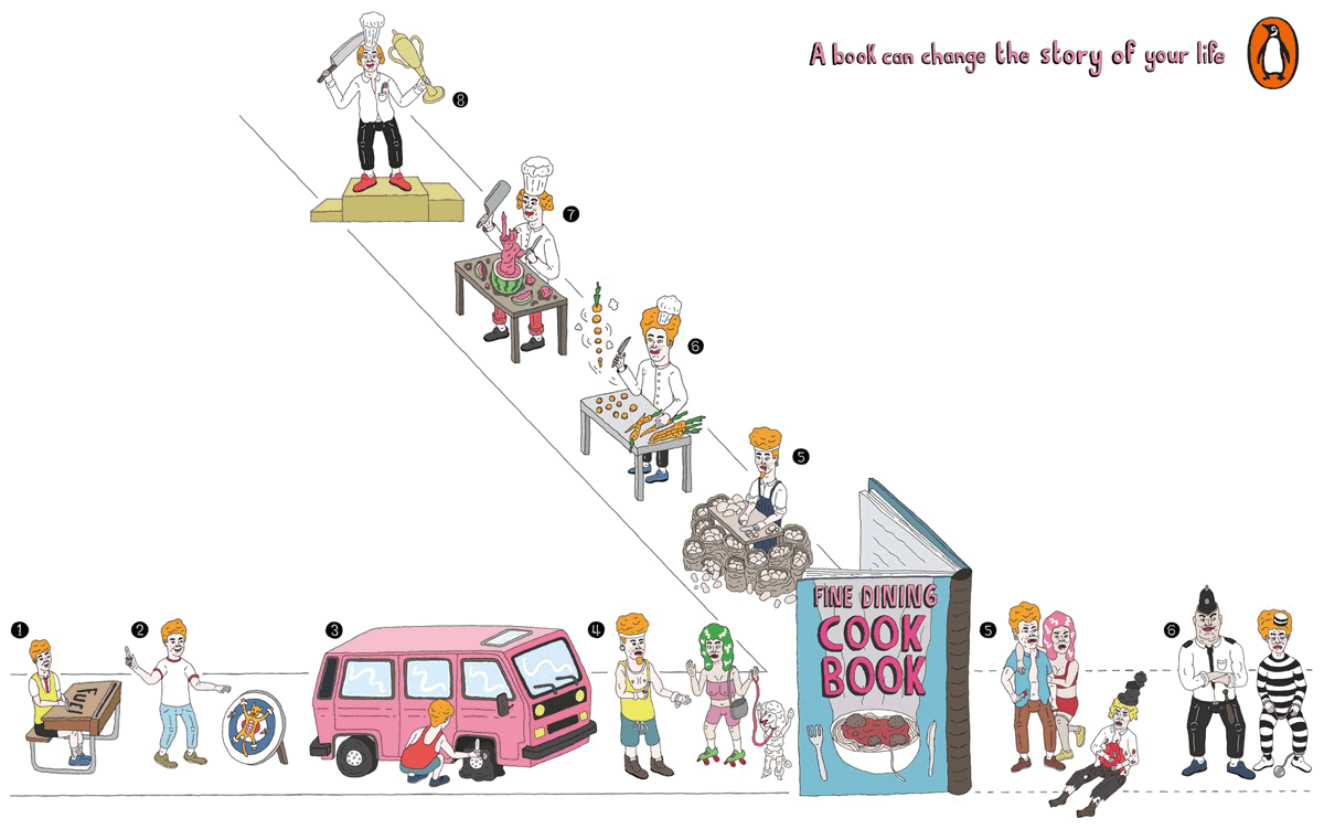 Y & R Beijing firmó campaña impresa para Penguin Books en la cual muestran de manera trágica el destino que podría tener tu vida si no lees nunca. La serie “Un libro puede cambiar la historia de su vida” muestra 5 historias que pueden tener finales catastróficos, si no aparece un libro en el camino que cambie la trayectoria de sus personajes.