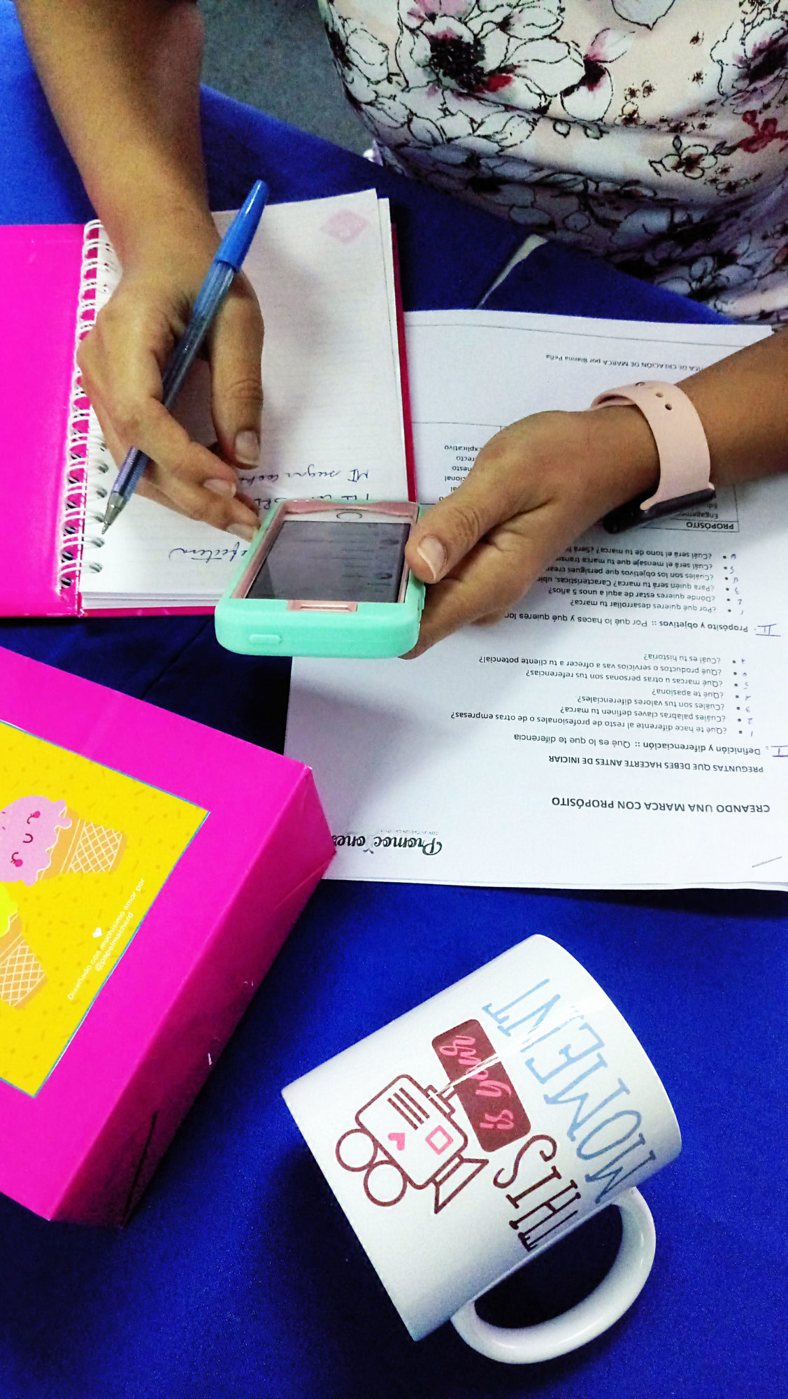 En este taller todas las emprendedoras, con o sin negocio, con deseos de mejorar su marca personal o la imagen de tu negocio, aprendieron como trabajar su marca personal o de negocio desde cero siguiendo una estrategia definida que les permitiría poder crear un mapa de hacia donde quieren y cómo quieren llevar su marca.